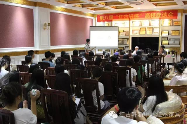 2016年6月17日,新中式紅木響徹中國。華南農(nóng)業(yè)大學(xué)70余名學(xué)生專程為新中式而來,于紅古軒紅木文化館,開展零距離的新中式紅木文化之旅,暨第八屆“紅古軒杯”新中式家具設(shè)計(jì)大賽分享會(huì)。