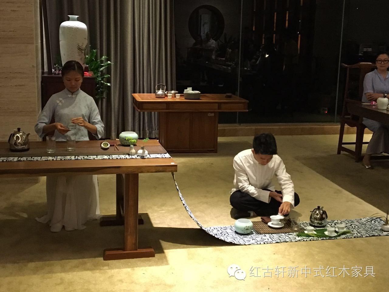 當晚,大家懷瑞著對中國傳統(tǒng)文化的敬畏之心,共度良辰美景,共賞中國紅木文化。所有在場的朋友坐在紅古軒頂尖的紅木椅上,品著茶,分享快樂因子,享受朋友的情誼和品茶的樂趣。而茶蒸騰的縷縷氤氳,飄出淡淡的清香沁人心脾,使人遐思無際,一種入禪的意境,出塵脫俗之感飄然而至。