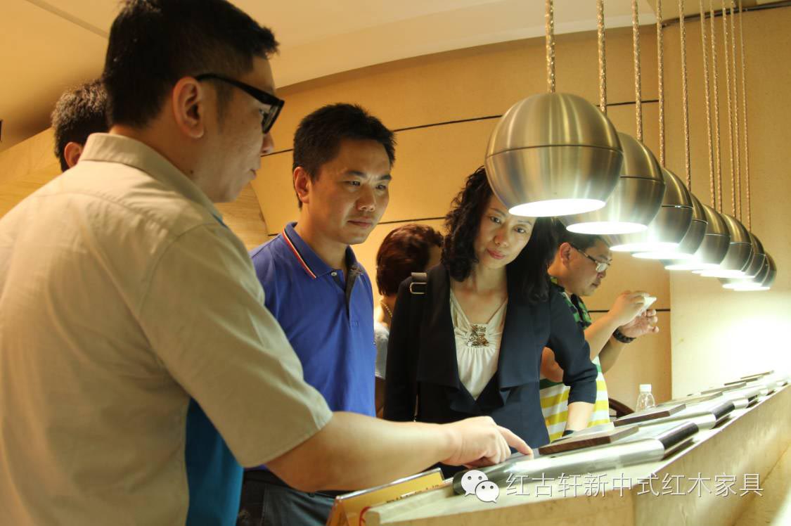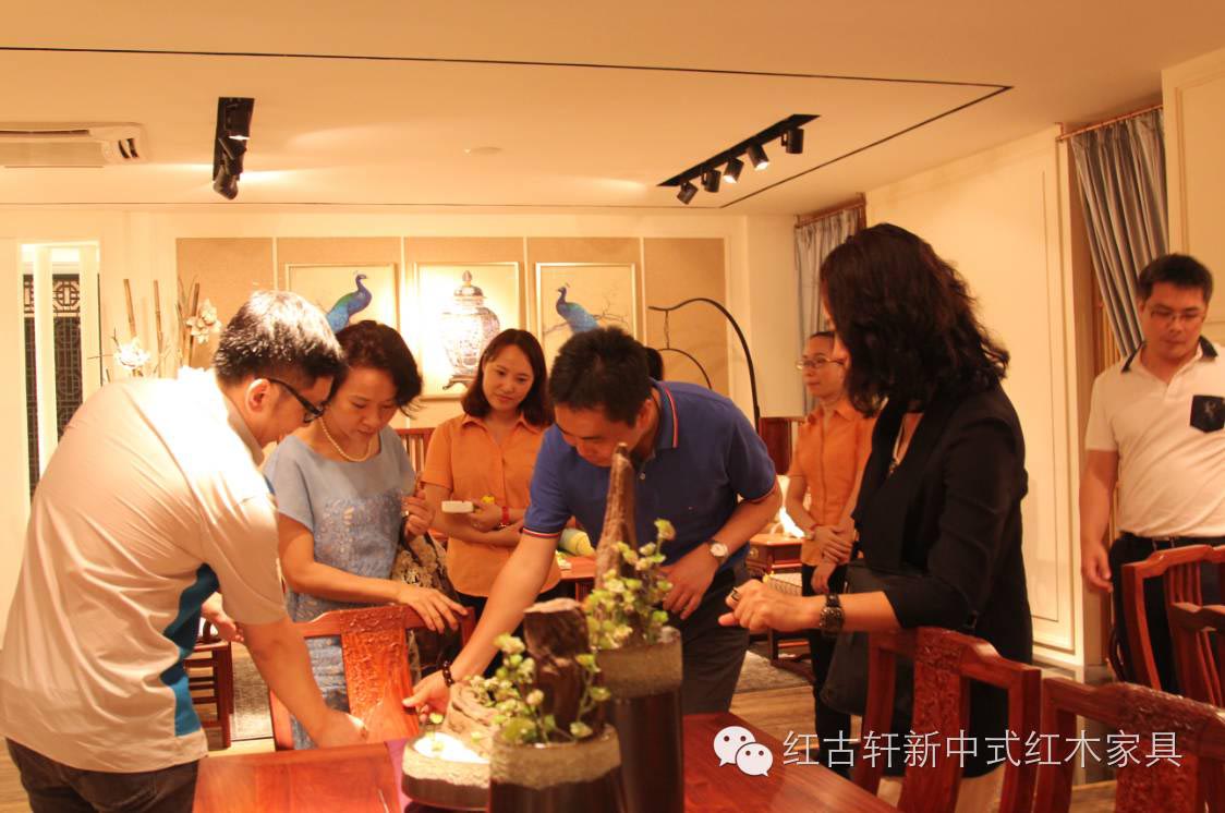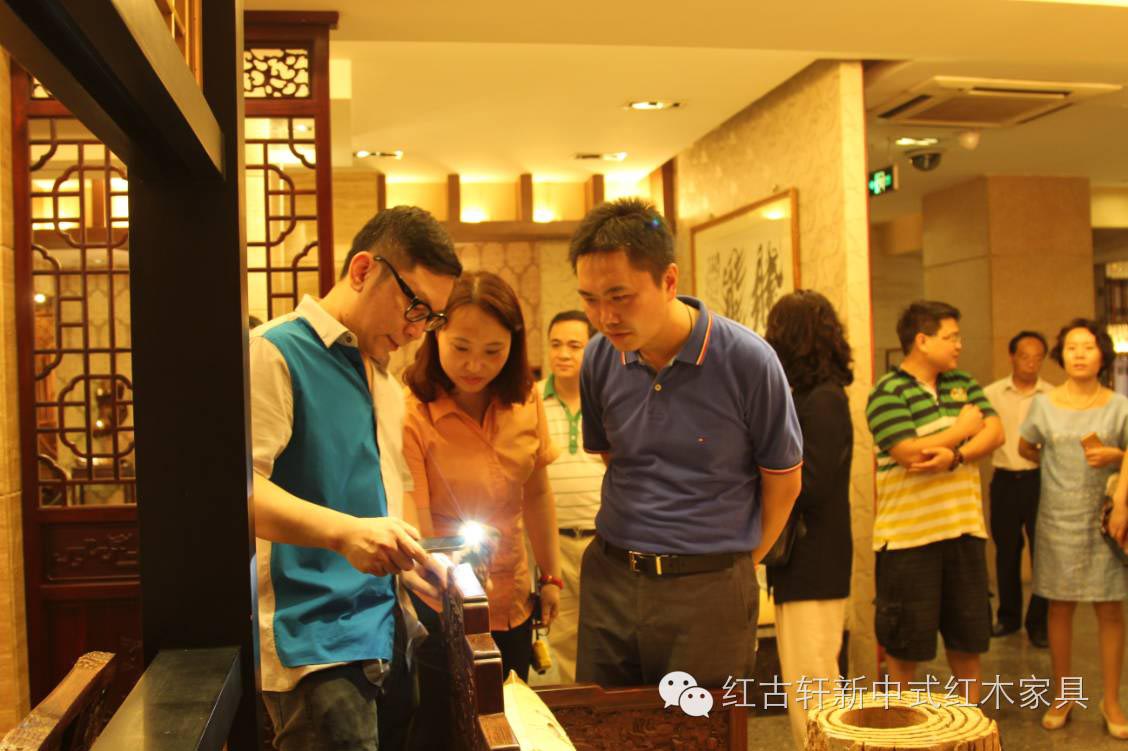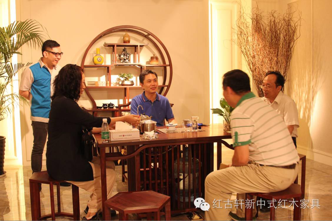 陳超強(qiáng)董事長(zhǎng)十分喜歡紅木家具,久聞紅古軒大名的他,于紅古軒細(xì)細(xì)品鑒每一件紅木。