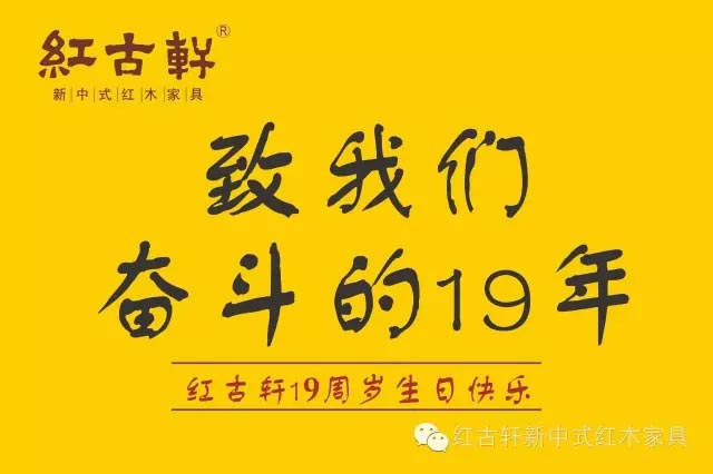 此刻開(kāi)始,世界的東方,閃閃發(fā)光的紅古軒品牌,又在續(xù)寫(xiě)紅木家具下一個(gè)十九年的不朽傳奇。