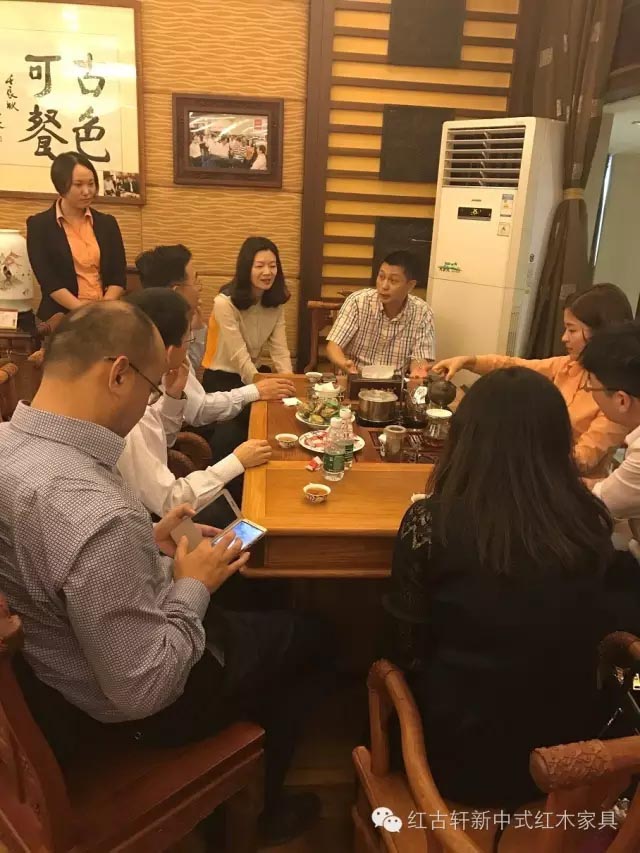 參觀結(jié)束后,大家還歡聚茶室,以最傳統(tǒng)的下午茶方式,悠閑地洽談,歡聲笑語間,共謀紅木家具發(fā)展大勢(shì)。