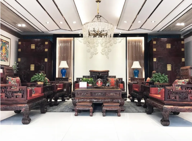 紅木椅環(huán)抱一室溫馨